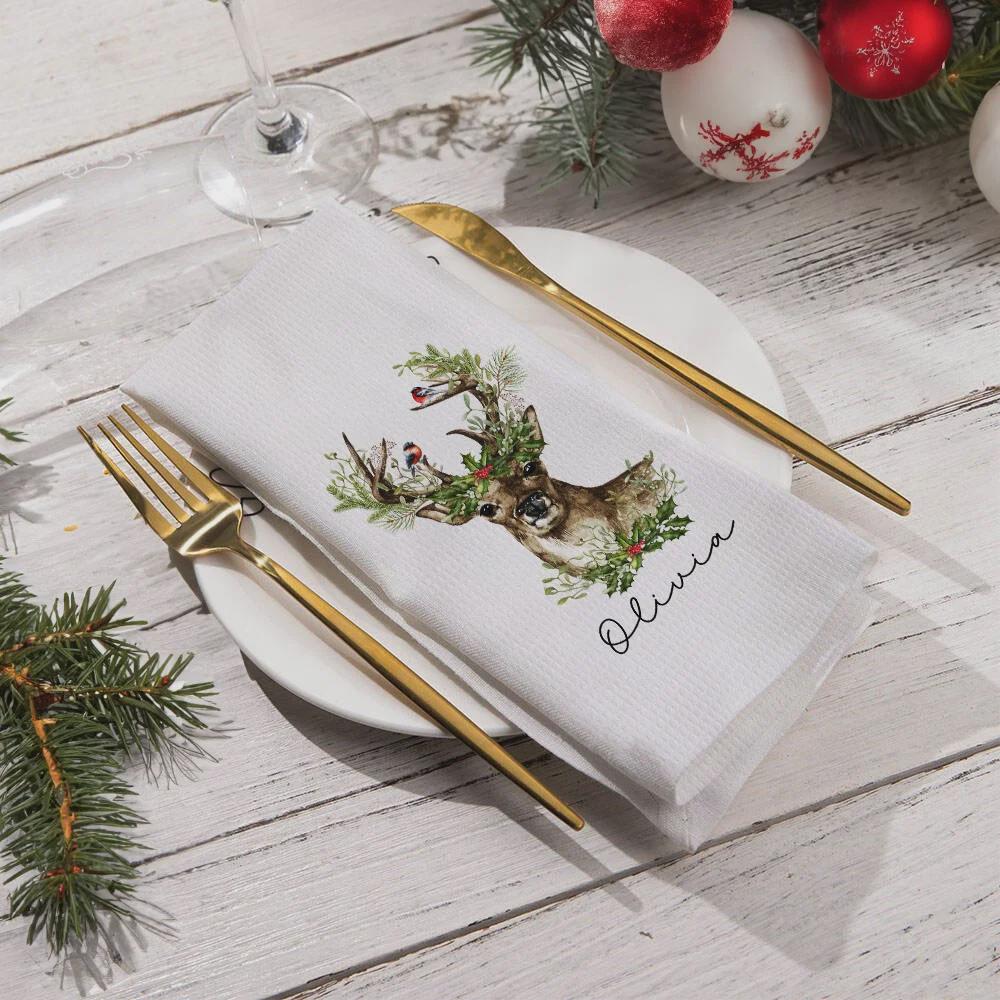 Add a festive touch to your holiday kitchen with our Personalized Christmas Reindeer Dish Towel. Crafted from soft, durable waffle weave fabric, this charming tea towel features a whimsical reindeer design that captures the magic of the season. Perfect for bringing warmth and personality to your kitchen decor, it also makes a thoughtful gift for mom, a hostess, or any family member who loves to celebrate the holidays in style.