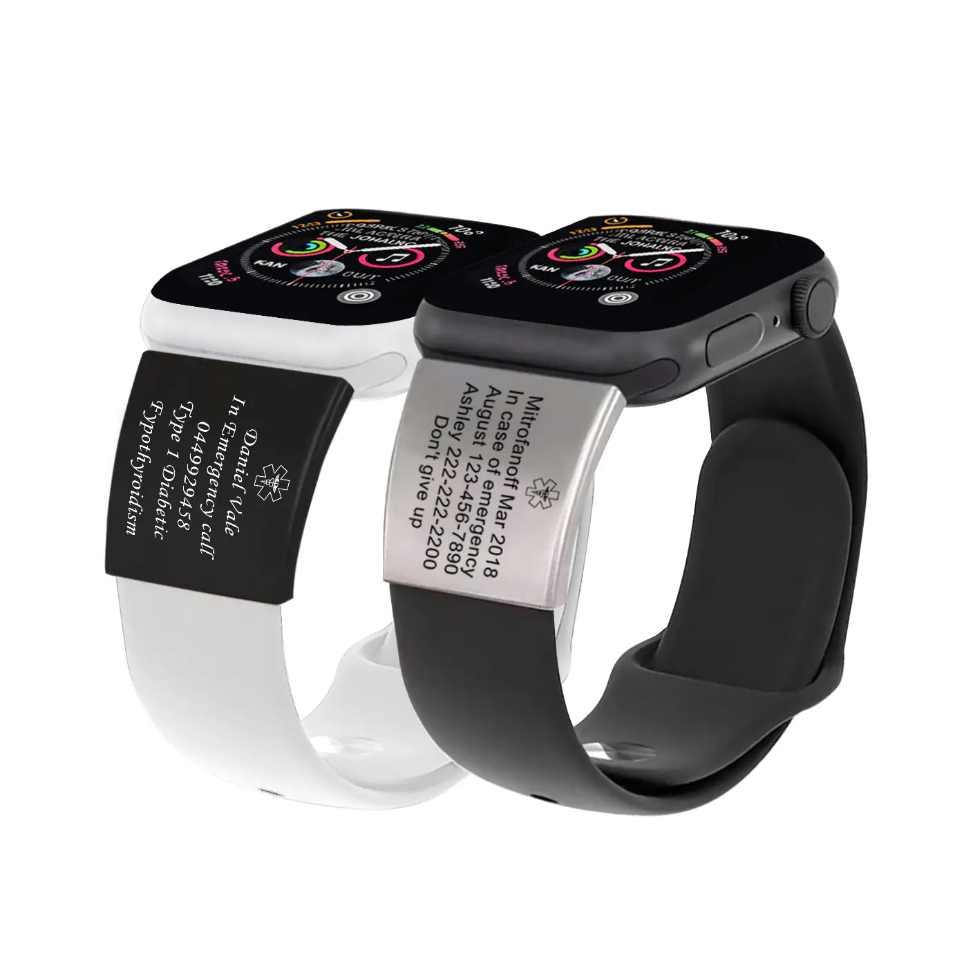 Introducing the Personalized Medical Alert ID Plate for Smartwatches, the ultimate safety solution for fitness runners, athletes, and anyone who relies on their smartwatch for daily life. This discreet yet vital medical tag for your wristband ensures your essential emergency information is always with you, seamlessly integrated with your favorite device.