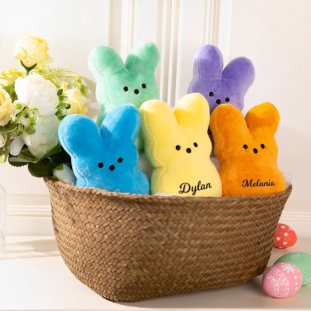 Make your Easter celebration more cuddly and cozy with these personalized name Easter bunny plush dolls.