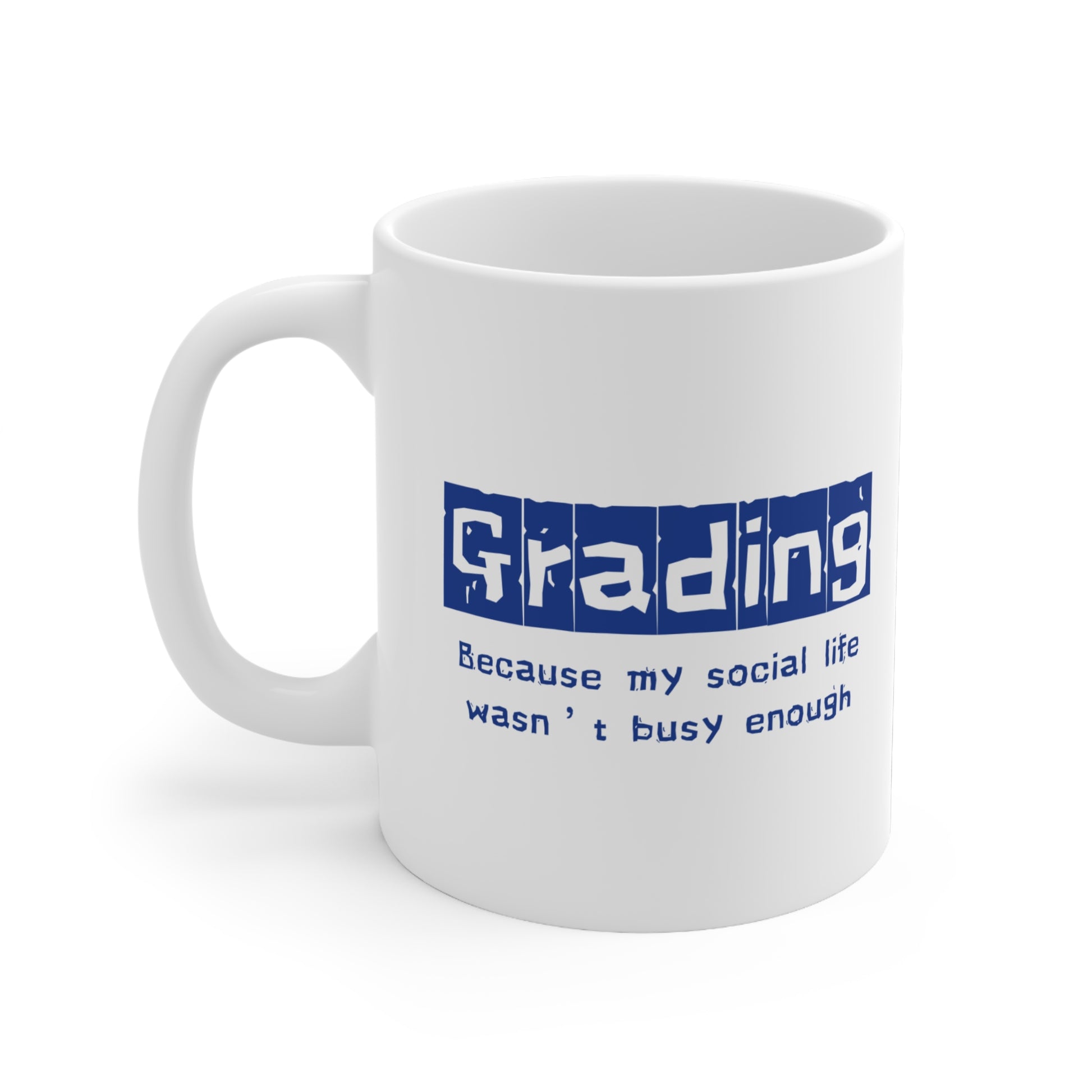 Witty Teacher Quote: Features the relatable and funny "Grading because my social life wasn't busy enough" design.